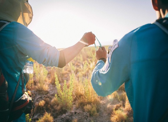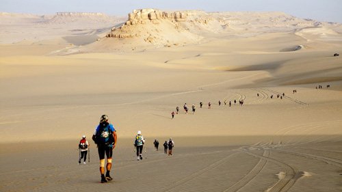 Blinds challenge the 5 desert marathon with gude runners of neighboring counries